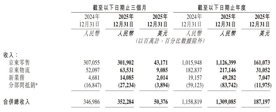 亿欧3月5日获悉,京东集团于港股盘后公布其2025年年度业绩报告。
