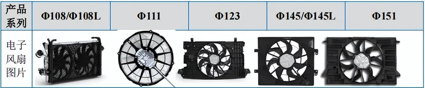 公司的电子风扇按电机类型可分为有刷系列和无刷系列,两大系列精准适配不同车型需求。有刷系列电子风扇主要配套传统动力 A 级车型(紧凑型),同时为追求成本控制的新能源平价车型推出 LF(长寿命)系列产品,该系列产品的使用寿命达到传统有刷电机的 2 倍;