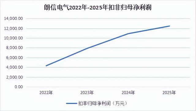 得益于收入规模的持续扩大及高附加值产品占比的提升,朗信电气的净利润实现稳步增长。2022 年至 2025 年,公司扣非归母净利润分别为 4305.82 万元、7876.36 万元、10898.19 万元和 12450.36 万元,2025 年扣非归母净利润同比增长 14.24%。