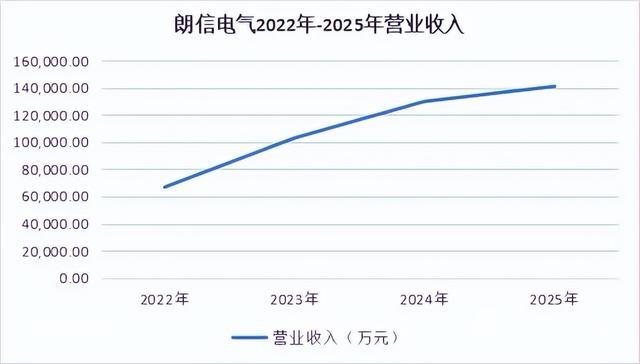 背靠行业发展红利,叠加自身市场份额的稳步提升,朗信电气的营业收入实现持续高速增长。2022-2024 年,公司营业收入从 6.68 亿元增长至 13.01 亿元,年复合增速达 39.50%;2025 年公司全年营业收入进一步增至 14.12 亿元,同比增长 8.53%,在高基数下依然保持稳健的增长势头。